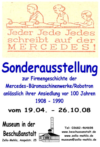 Am 01.10.2008 jährt sich das Datum der Ansiedlung der Mercedes-Bureau-Maschinen-Gesellschaft m.b.H. in Zella-Mehlis zum einhundertsten Mal.
