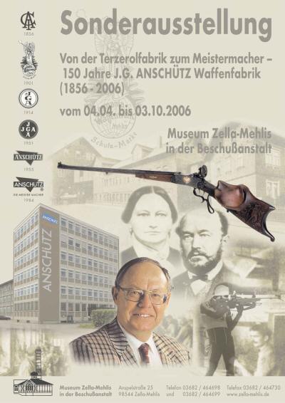 Ab dem 4. April 2006 wird im "Museum in der Beschußanstalt" Zella-Mehlis eine Sonderausstellung gezeigt, die die 150-jährige Geschichte der Jagd- und Sportwaffenfabrik J.G. Anschütz thematisiert.